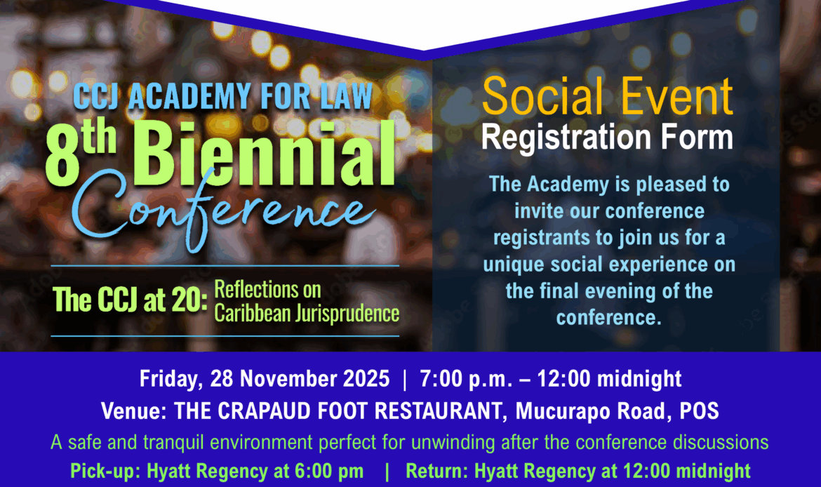 The CCJ Academy for Law will host its social event on 28 November 2025, following the conclusion of conference activities, at the Crapaud Foot Restaurant in Port of Spain. Interested […]