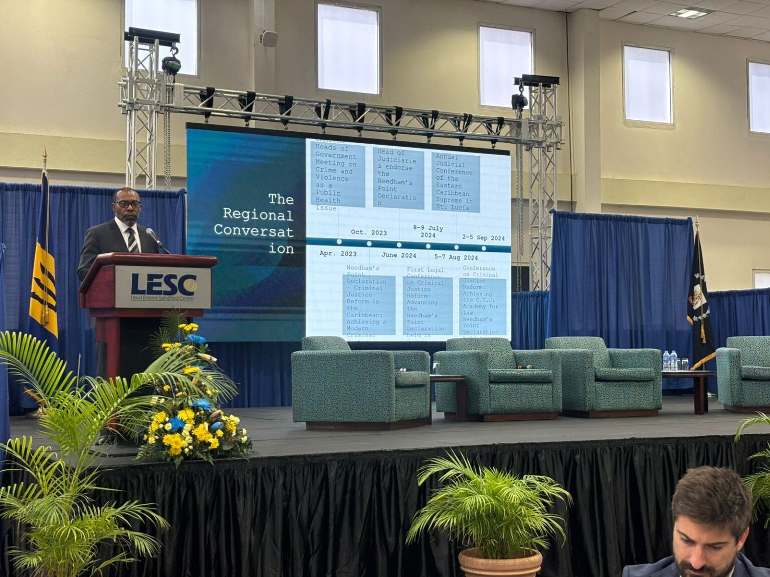 Between 27-29 January, 2025, Justice Anderson, in his capacity as Chairman of the CCJ Academy for Law and the Monitoring, Evaluating and Facilitating Committee of the Needham’s Point Declaration, was invited to deliver a keynote address at the Barbados Backlog symposium hosted by the UNDP-PACE Project in Collaboration with Government of Barbados, Inter-American Development Bank (IDB), and the European Union at the Lloyd Erskine Sandiford Conference Centre (LESC) in Bridgetown, Barbados. In his presentation, Justice Anderson adeptly tied together the discussions held on the second and third days of the symposium, focusing particularly on the Needham’s Point Declaration and its impact.
